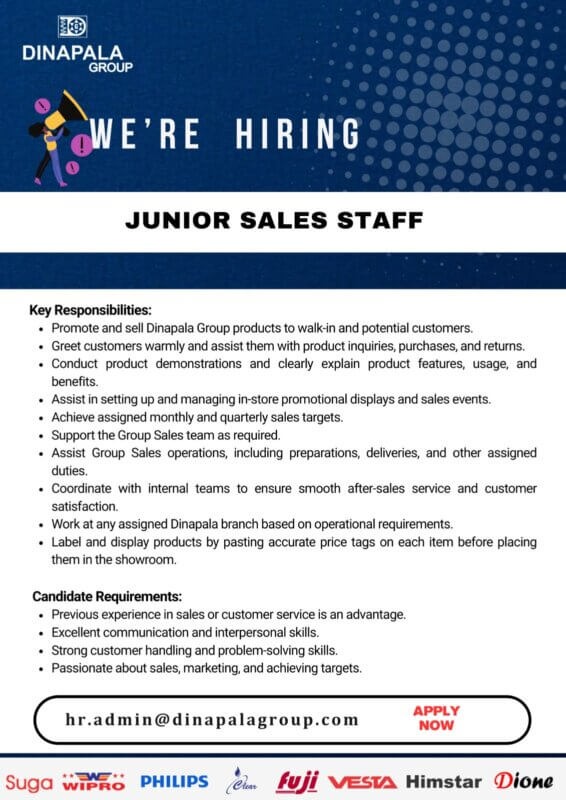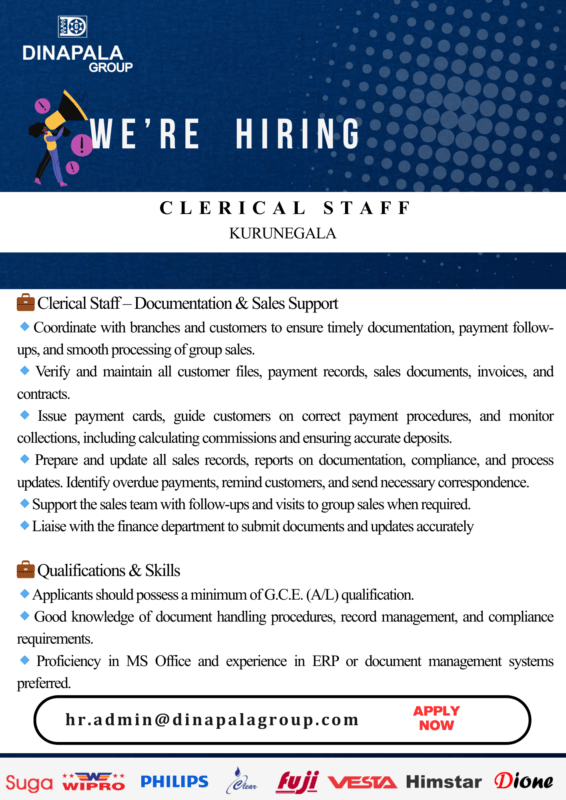 Please Select Correctly From the list below The Vacant Position That You Are Applying For Junior Sales Staff - BambalapitiyaStore Keeper-Moratuwa WarehouseStore Keeper-Gelioya WarehouseClerical Staff-Kurunegala