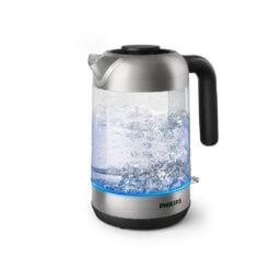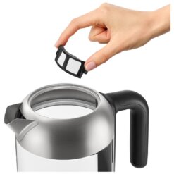 Experience fast and safe boiling with this stylish electric kettle. Designed with safety and convenience in mind, it features a 360-degree base, automatic shut-off, and non-slip feet for stable use. Its glass body with stainless steel heating element ensures durability and easy cleaning, while the micro mesh filter guarantees pure water every time.