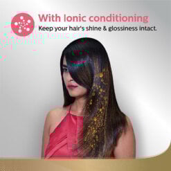 Charged negative ions eliminate static, condition the hair and smooth down the hair cuticles to intensify the hair’s shine and glossiness. The result is smooth, frizz-free hair with vibrant shine.