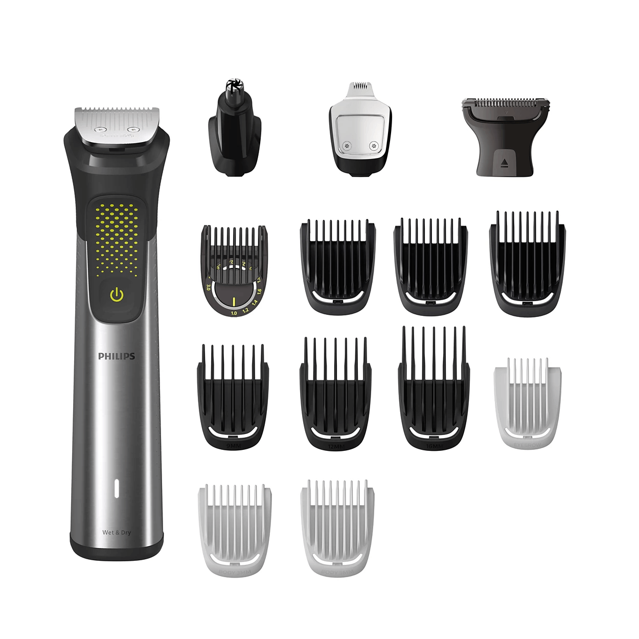 The trimmer and its multi-comb set offer 17 length settings from 0.5 to 16 mm in up to 0.2 mm precision steps for shorter and longer beard styles. The narrow design of the precision trimmer attachment makes it easy to create sharp edges and fine details. The metal trimmer attachment cleans up cheeks, chin and neck to finish your look.
