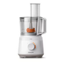 The compact Daily Food Processor takes up less countertop space, yet is fully equipped with all of the kitchen essentials that you can easily store inside of the bowl.