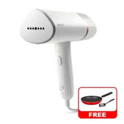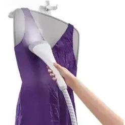 Integrated garment hanger lets you easily hang your garments like shirts, dresses and trousers while using the steamer