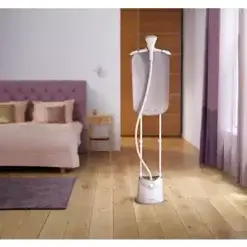 Integrated with double adjustable poles to hang your garments while using the steamer. It is collapsible for easy storage